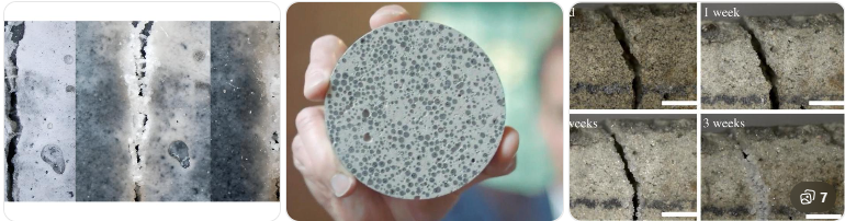 Existe el llamado hormigón autorreparable. Contiene bacterias que, al entrar en contacto con agua, producen caliza y sellan grietas.